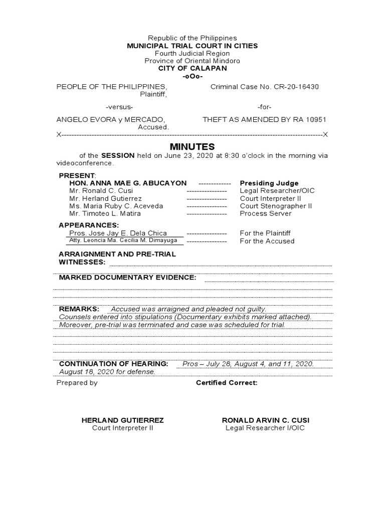 ANGELO EVORA y MERCADO, THEFT AS AMENDED BY RA 10951