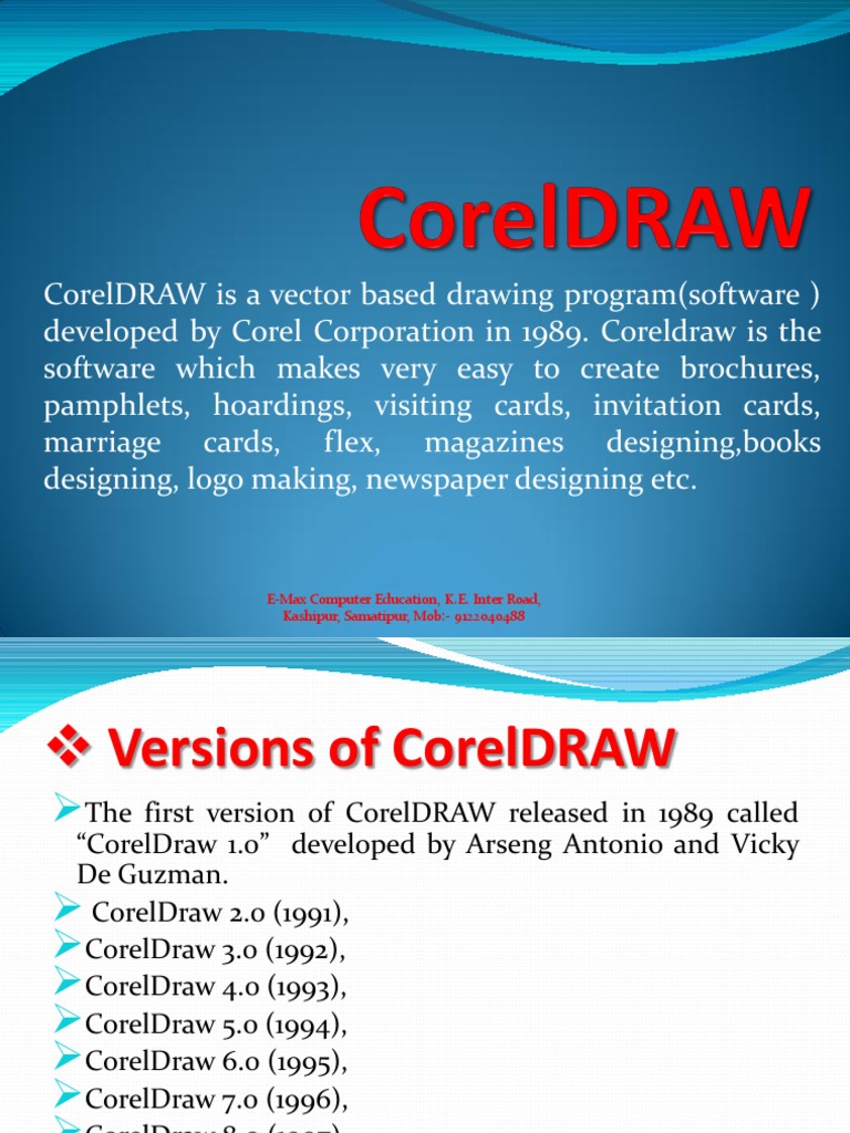 developed by Corel Corporation in 1989. Coreldraw is the