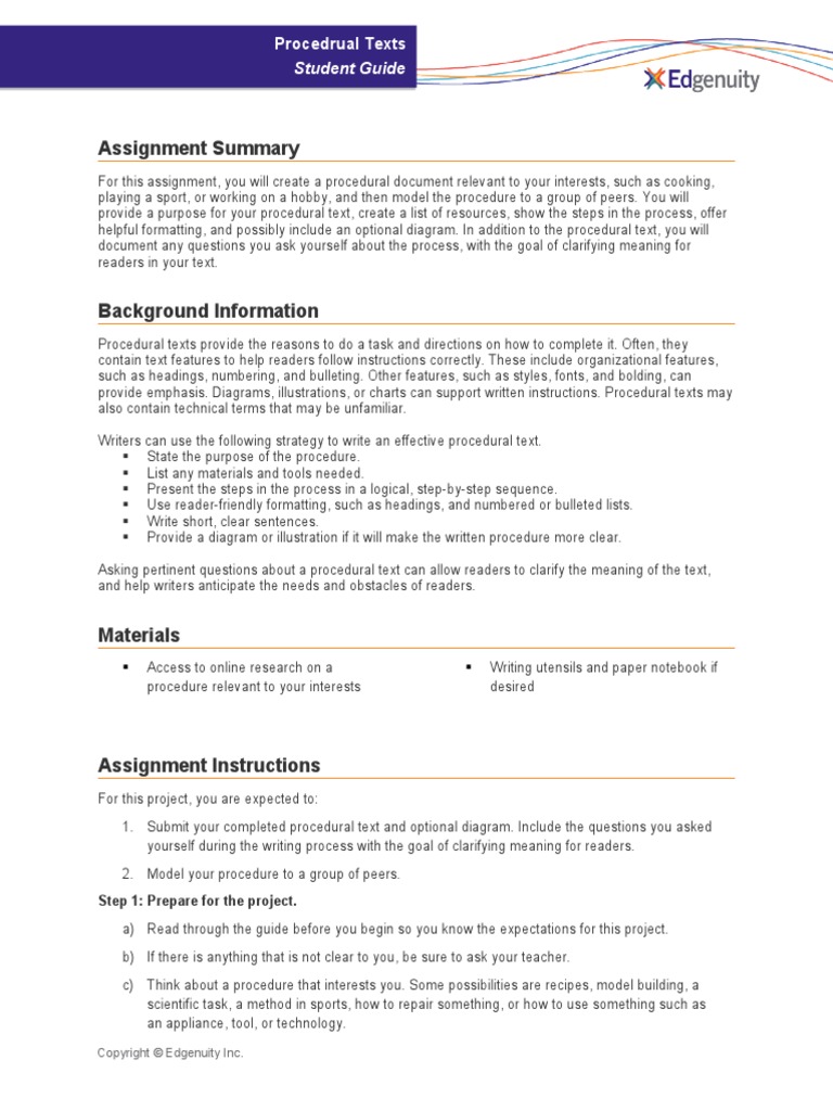 b) Turn in your completed procedural text and optional diagram, with questions you asked with