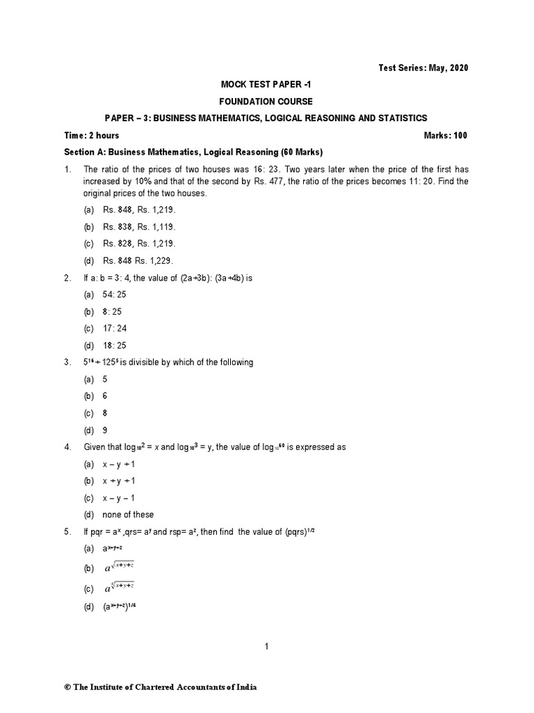 PAPER – 3: BUSINESS MATHEMATICS, LOGICAL REASONING AND STATISTICS