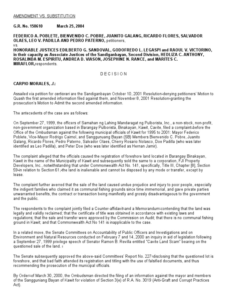 By Resolution of October 17, 2000, the Sandiganbayan admitted the Amended Information on the ground that the