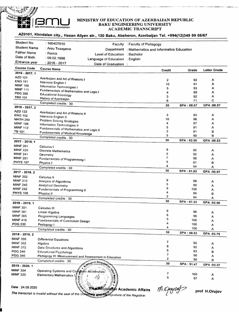 Student Name: Arzu Tosayeva Department : Mathematics and Informatics Education