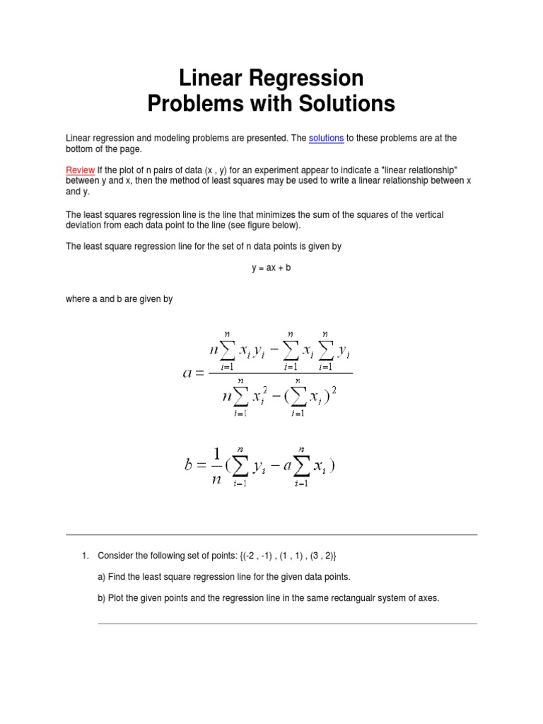 Linear regression and modeling problems are presented. The solutions to these problems are at the