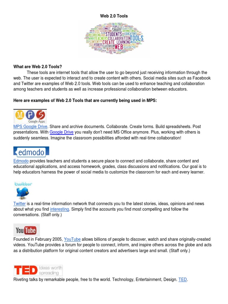 Here are examples of Web 2.0 Tools that are currently being used in MPS: