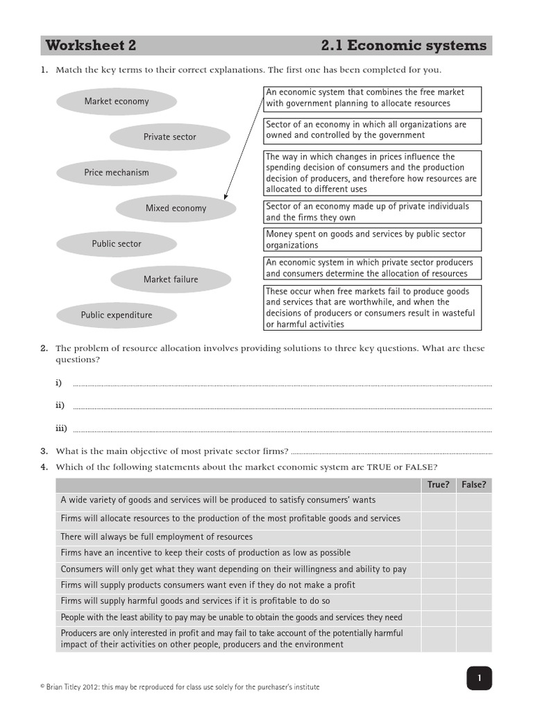 4. Which of the following statements about the market economic system are TRUE or FALSE?