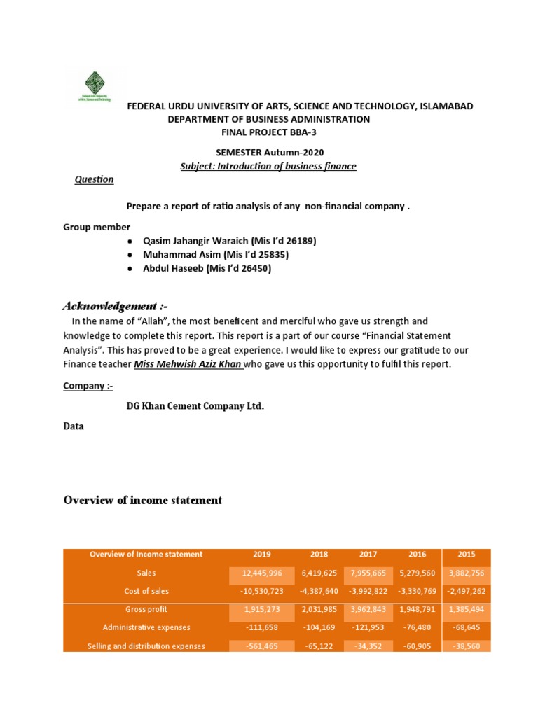 knowledge to complete this report. This report is a part of our course “Financial Statement