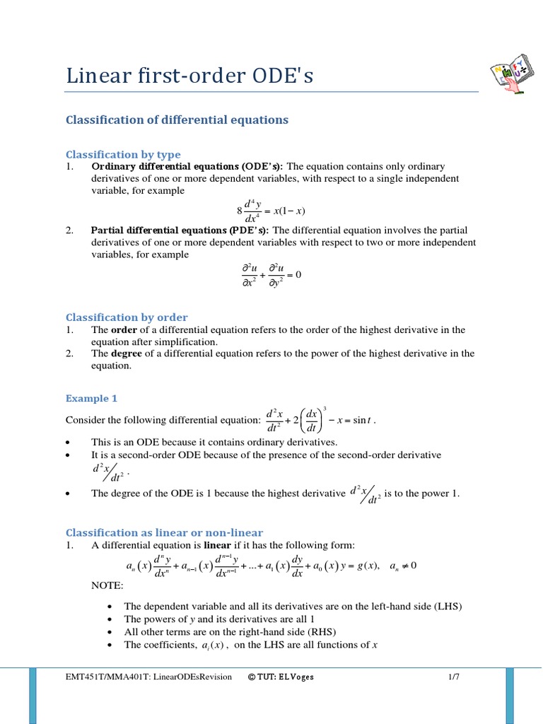 EMT451T/MMA401T: LinearODEsRevision © TUT: EL Voges 2/7
