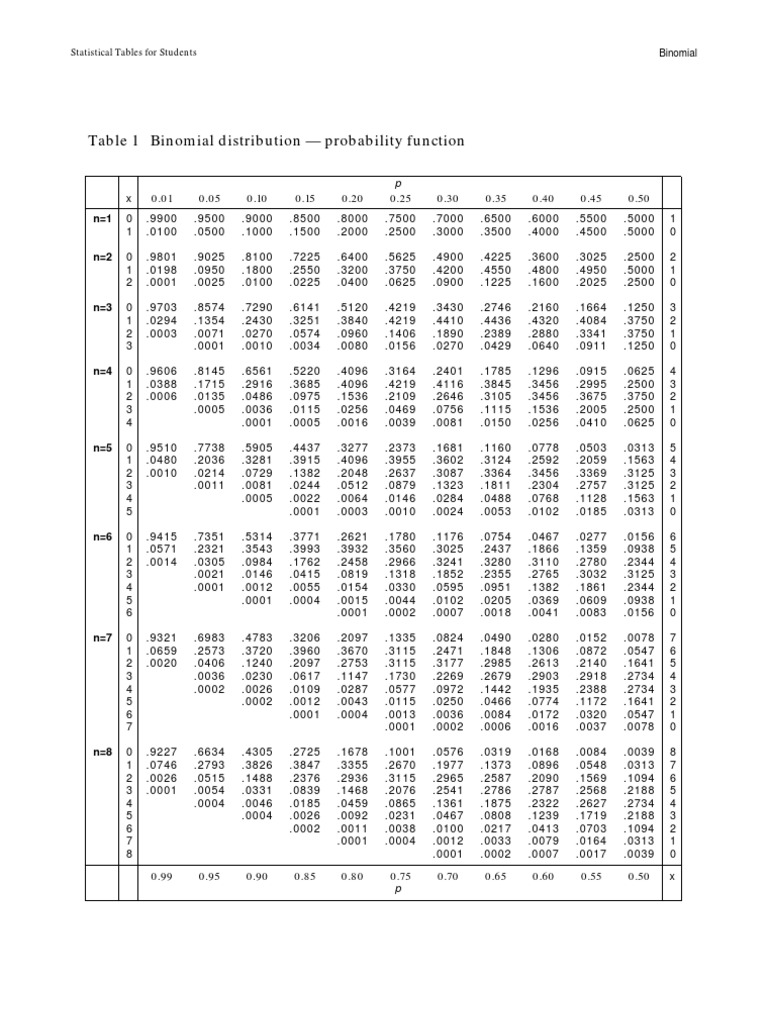 Statistical Tables for Students Binomial