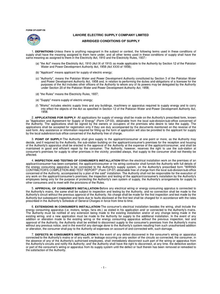 as "Application and Agreement for Supply of Energy" (Form CP-03), obtainable from the local sub-division/sub-office concerned of