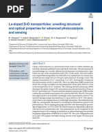 Muensit, Optical and photocatalytic properties of La-doped ZnO nanoparticles nanostructured ag-ZnO and their photocatalytic performance under sunlight,