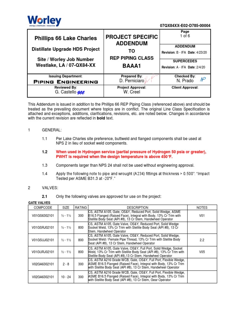 Piping Engineering: Phillips 66 Lake Charles Project Specific Addendum