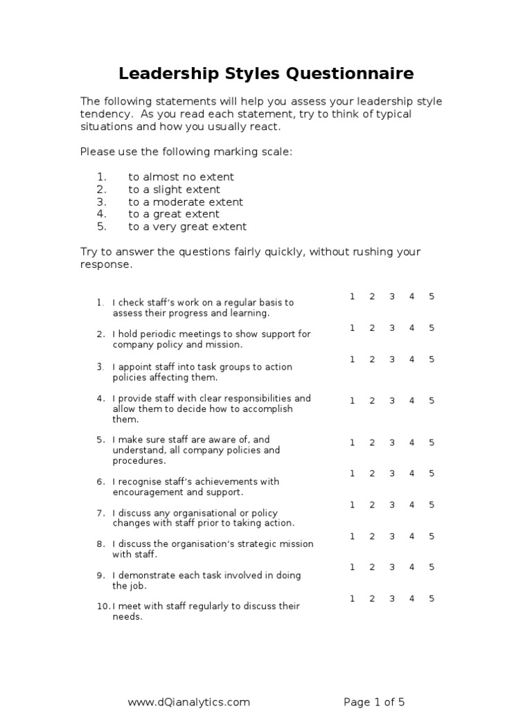 Leadership Styles Questionnaire