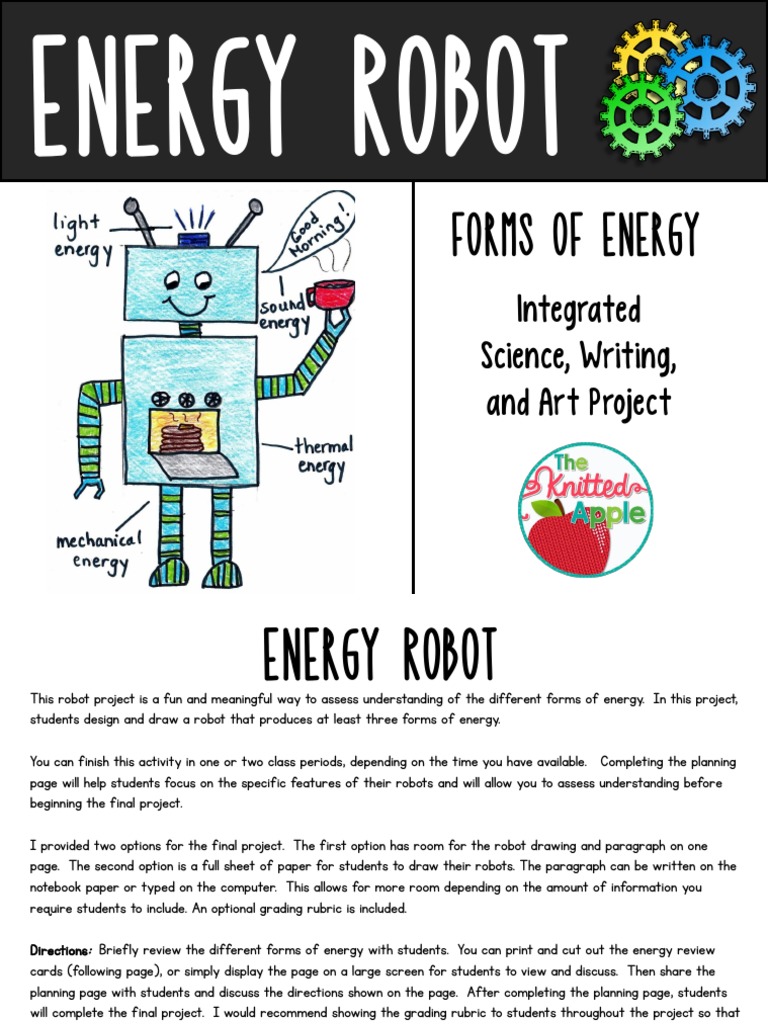 This robot project is a fun and meaningful way to assess understanding of the different forms of energy. In this project,