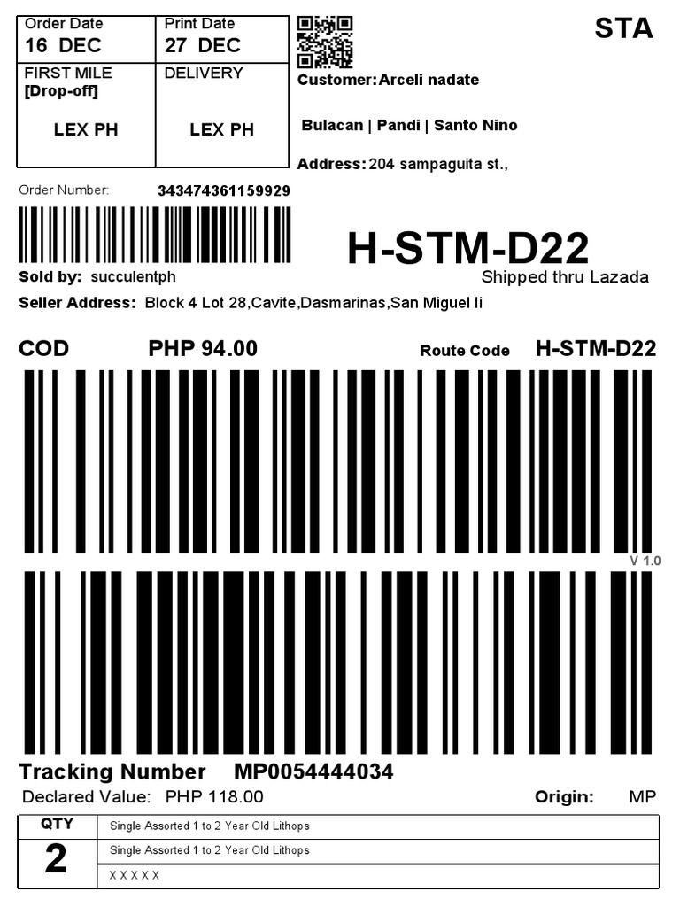 FIRST MILE DELIVERY Customer: Qlljo Z. Mariano