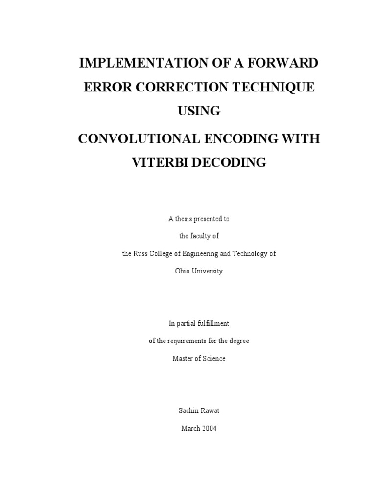 The thesis initially explains the working of a convolutional encoder. The encoded