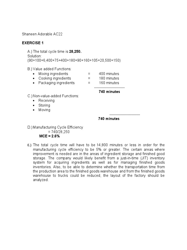 manufacturing cycle efficiency to be 5% or greater. The certain areas where
