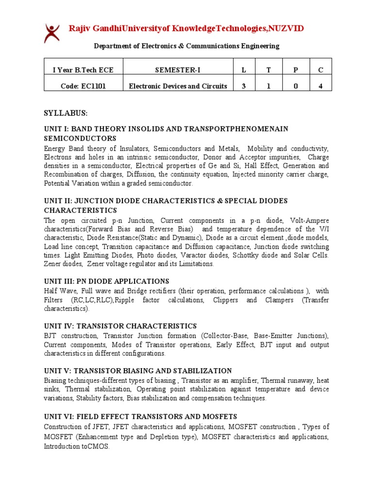 Code: EC1101 Electronic Devices and Circuits 3 1 0 4