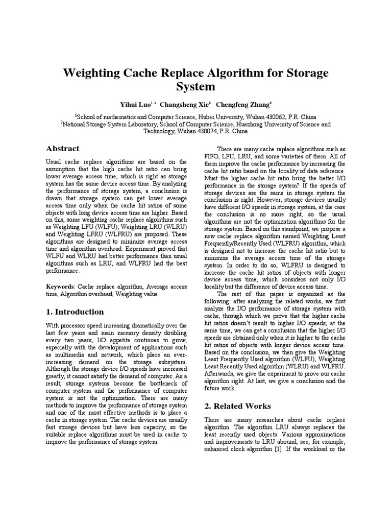 Although the storage device I/O speeds have increased Least Recently Used algorithm (WLRU) and WLFRU.