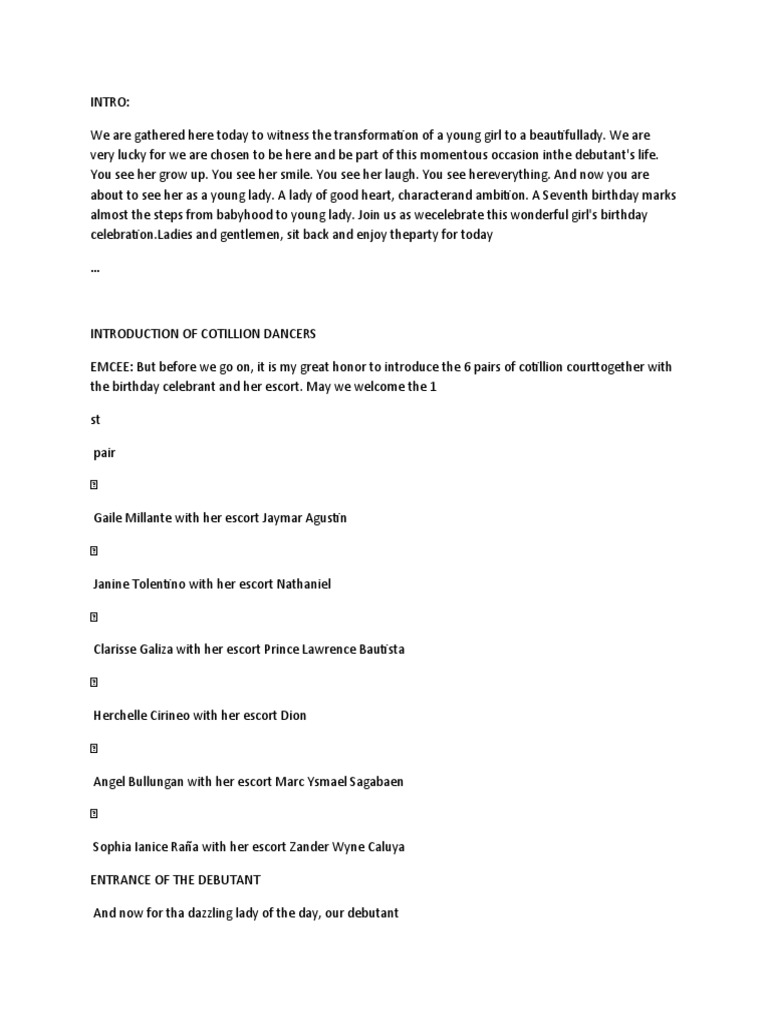 Before we proceed to the main part of the occasion, may we call in the cousin of ourdebutant Miss