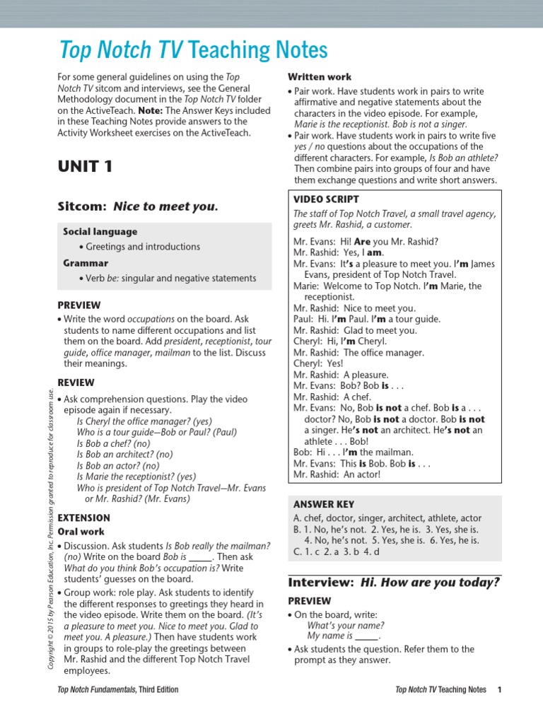 in these Teaching Notes provide answers to the Marie is the receptionist. Bob is not a singer.