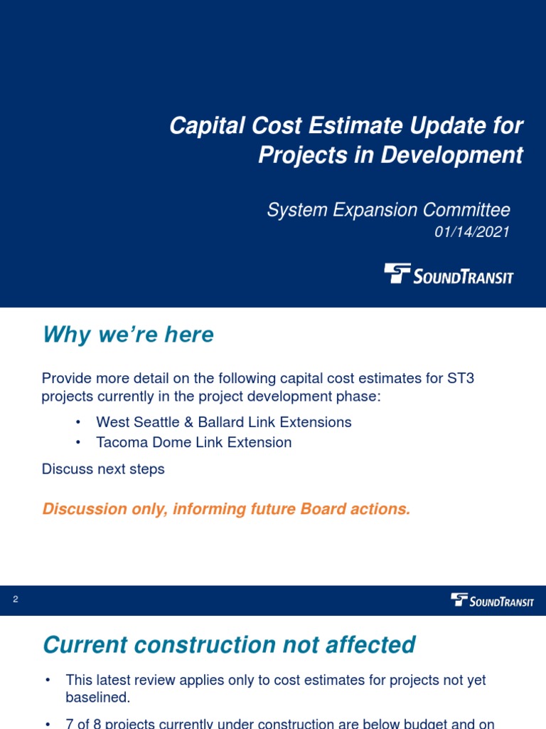 Capital Cost Estimate Update for Projects in Development