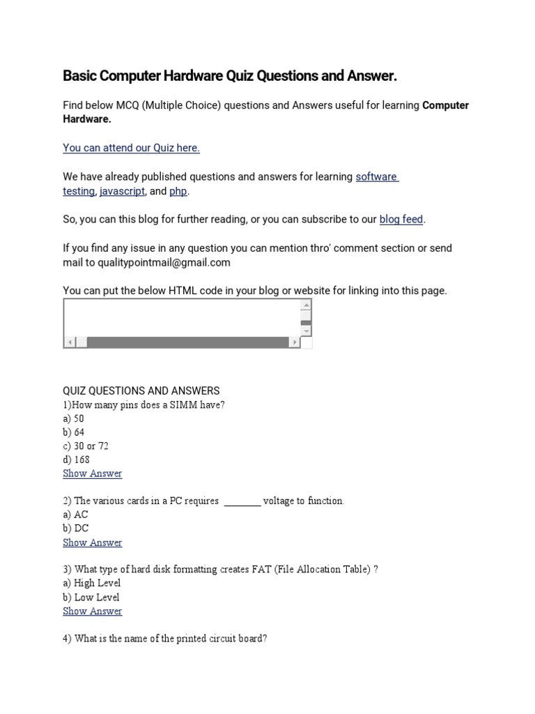 Basic Computer Hardware Quiz Questions and Answer.