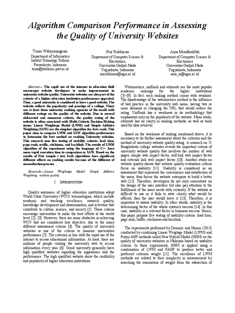 different assessment criteria [4]. The quality of university The experiments performed by Dominic and Hanim (2013)
