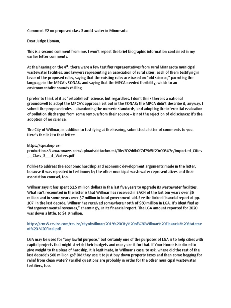Comment #2 on proposed class 3 and 4 water in Minnesota