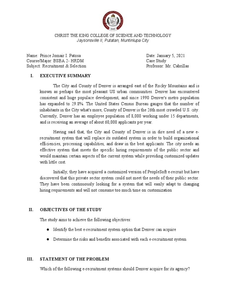 ● Identify the best e-recruitment system option that Denver can acquire