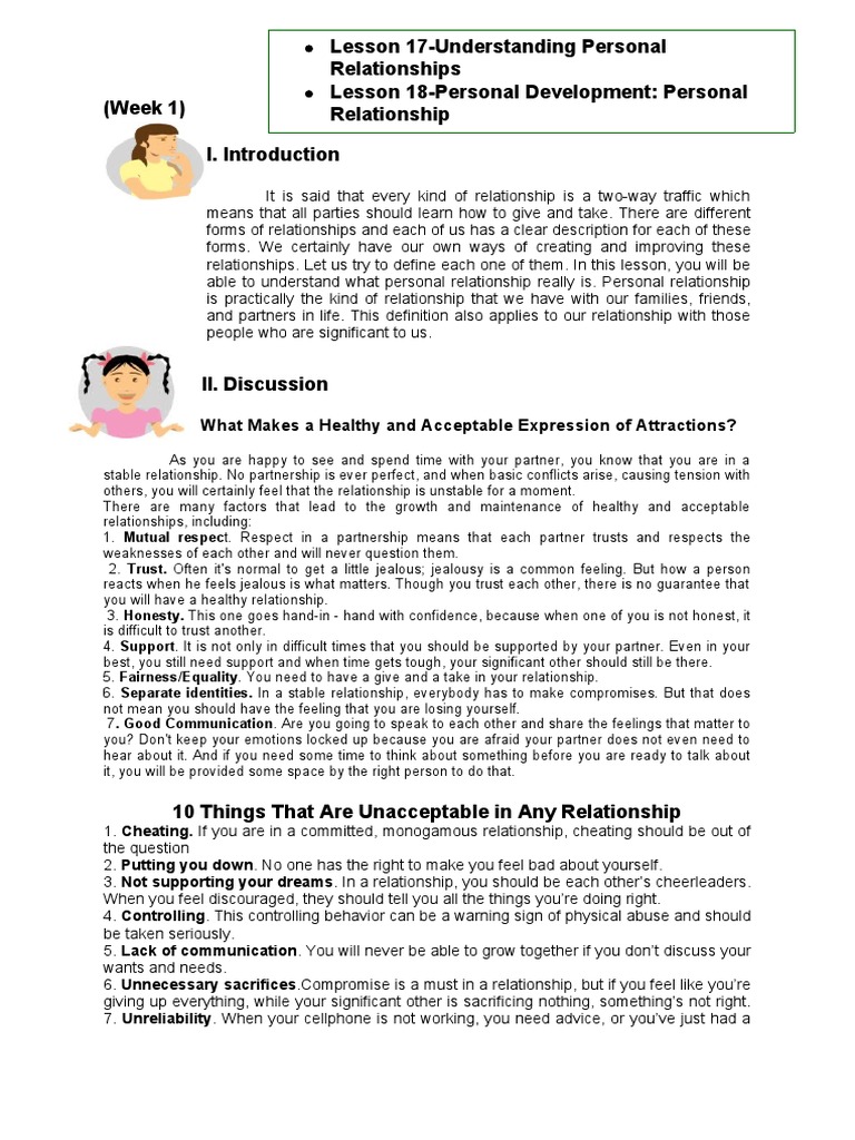 Lesson 19: Becoming Responsible in a Personal Relationships