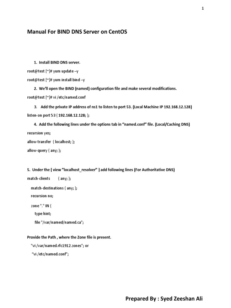 Manual For BIND DNS Server on CentOS
