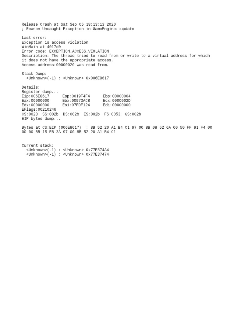 Error code: EXCEPTION_ACCESS_VIOLATION
