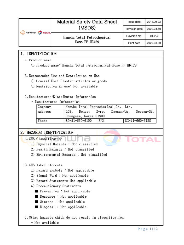 (MSDS) Revision date 2020.03.30