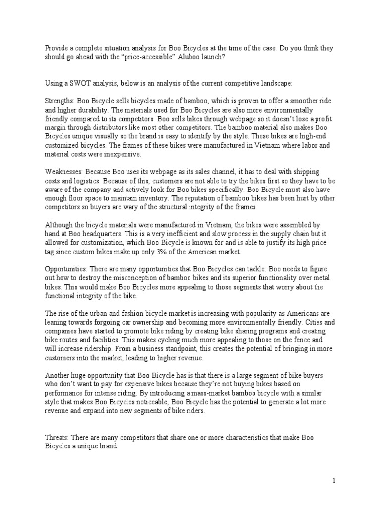 Provide a complete situation analysis for Boo Bicycles at the time of the case.