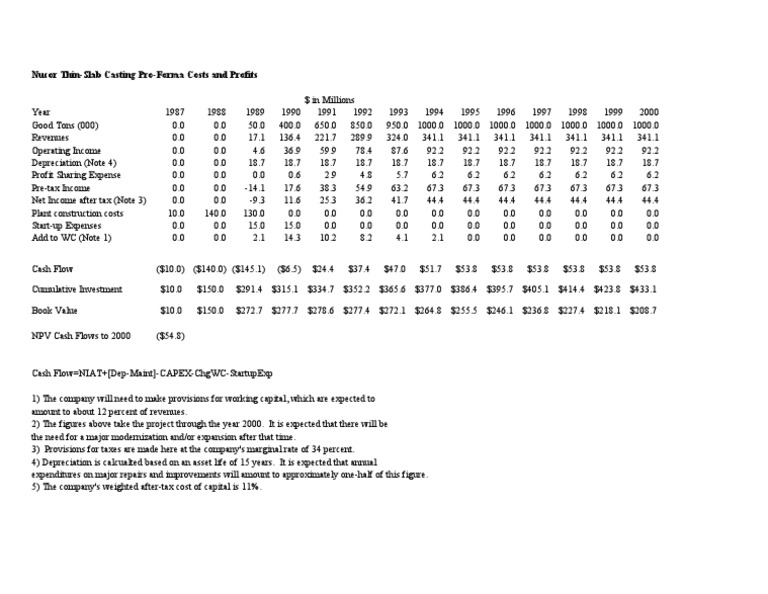 Nucor Thin-Slab Casting Pro-Forma Costs and Profits
