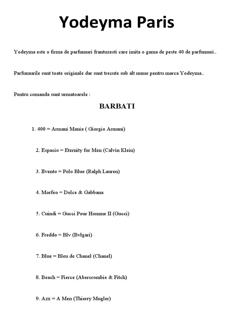 Parfumurile sunt toate originale dar sunt trecute sub alt nume pentru marca Yodeyma..