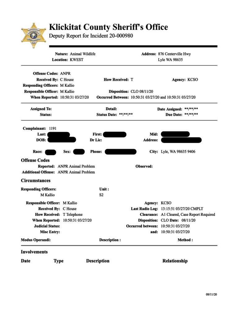 08/10/20 Klickitat County Sheriff's Office 1055