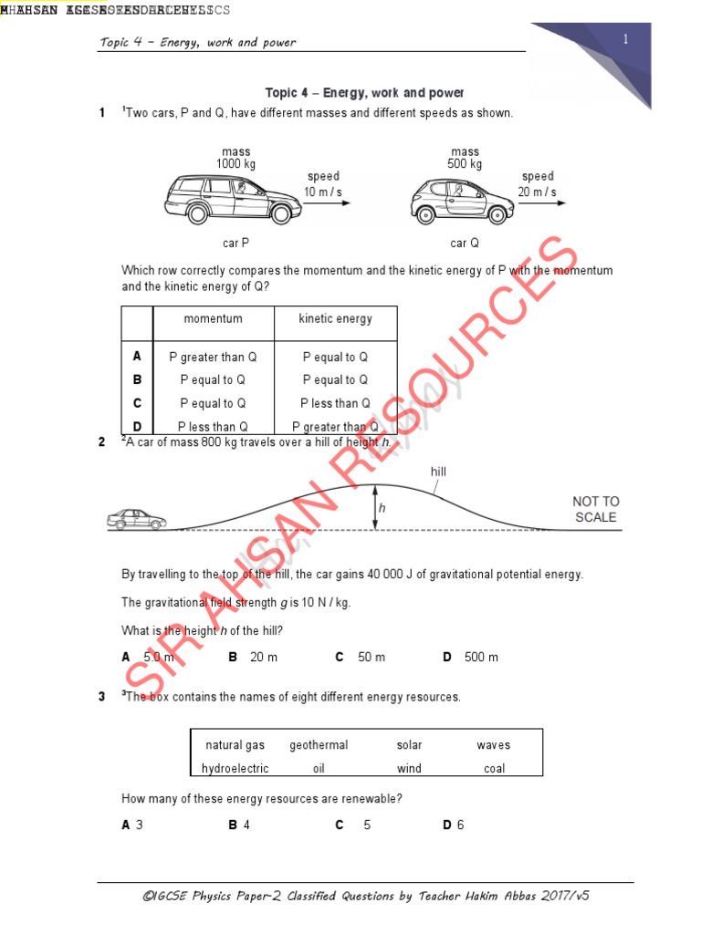 Topic 4 – Energy, work and power 1