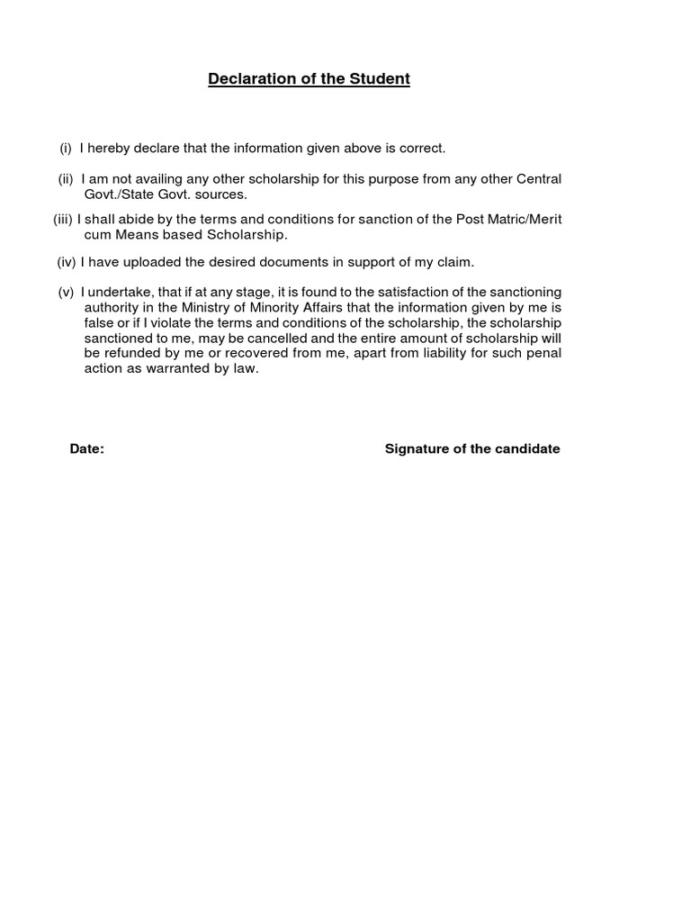 (ii) I am not availing any other scholarship for this purpose from any other Central