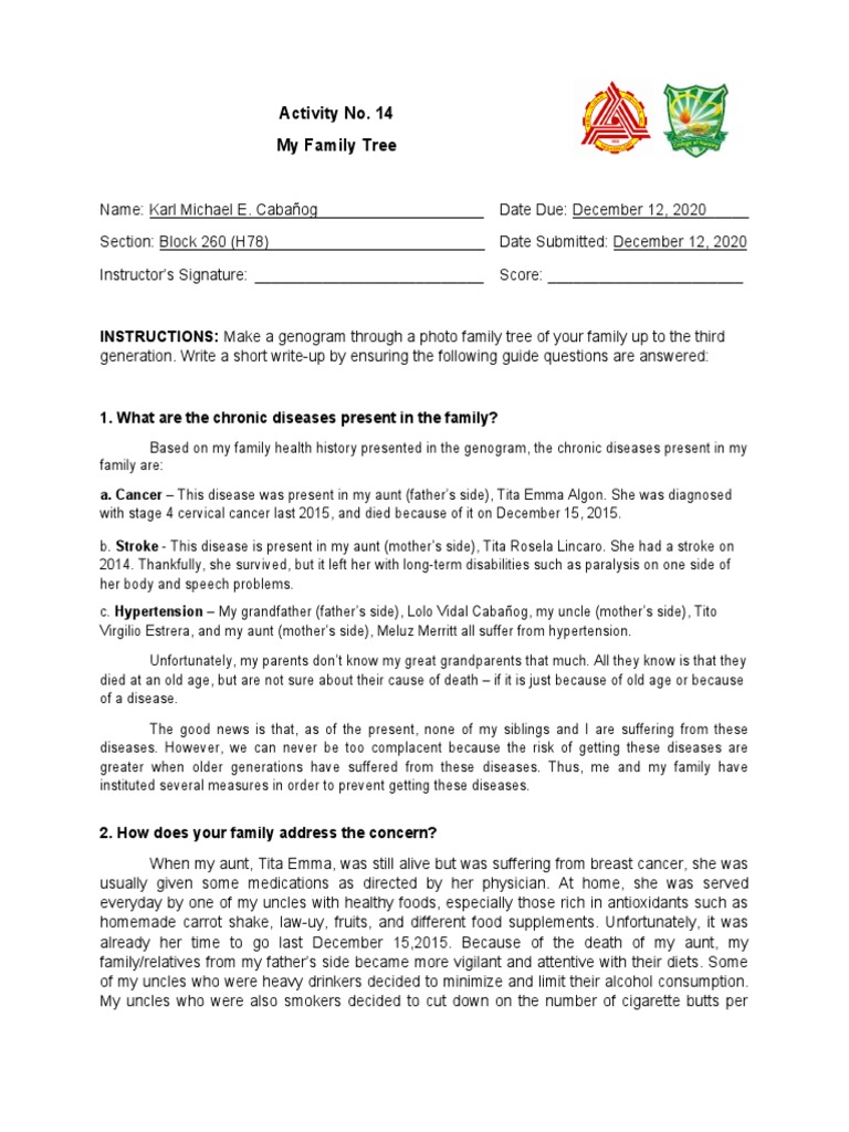 INSTRUCTIONS: Make a genogram through a photo family tree of your family up to the third