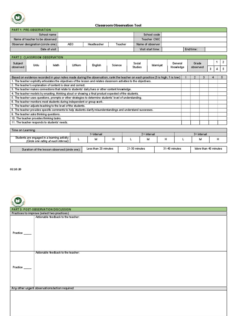 Classroom Observation Tool