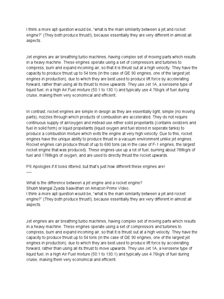 engine?” (They both produce thrust!), because essentially they are very different in almost all