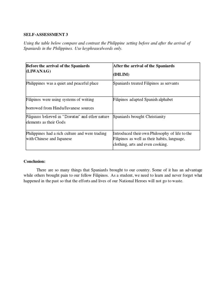 Using the table below compare and contrast the Philippine setting before and after the arrival of