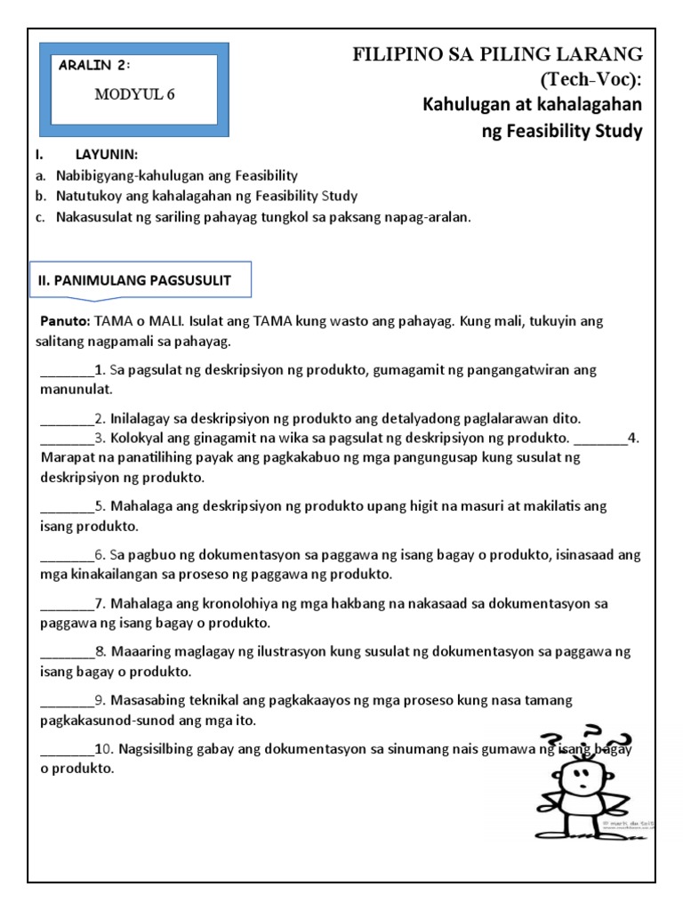 7-10.Magbigay ng sariling opinyon kung ano ang feasibility study batay sa iyong napag-aralan.