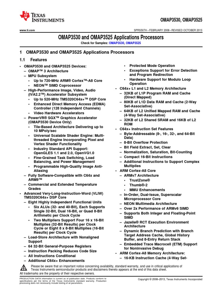 2 OMAP3530 and OMAP3525 Applications Processors Copyright © 2008–2013, Texas Instruments Incorporated