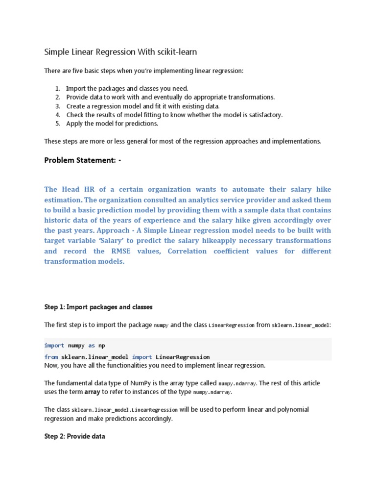 target variable ‘Salary’ to predict the salary hikeapply necessary transformations