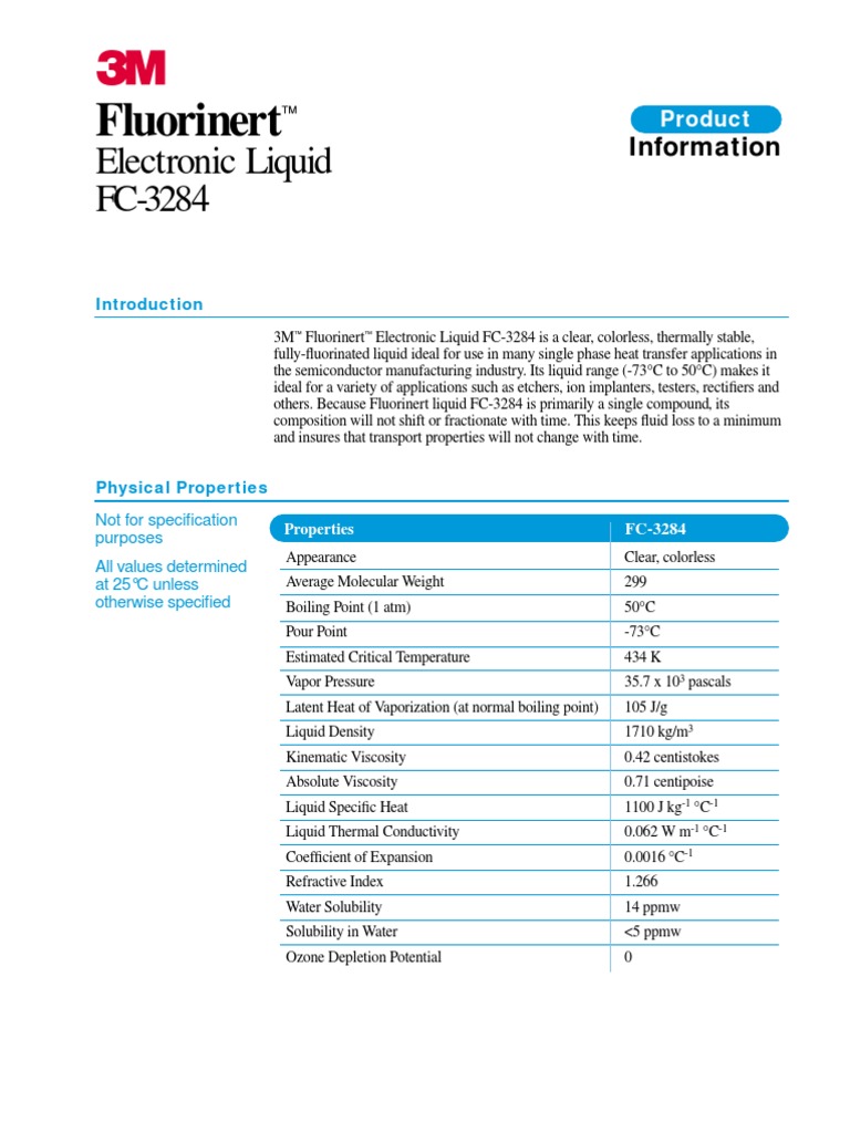 3M™ Fluorinert™ Electronic Liquid FC-3284 is a clear, colorless, thermally stable,