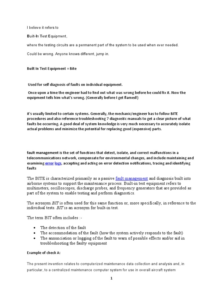 commonly referred to as Built in Test Equipment (BITE).
