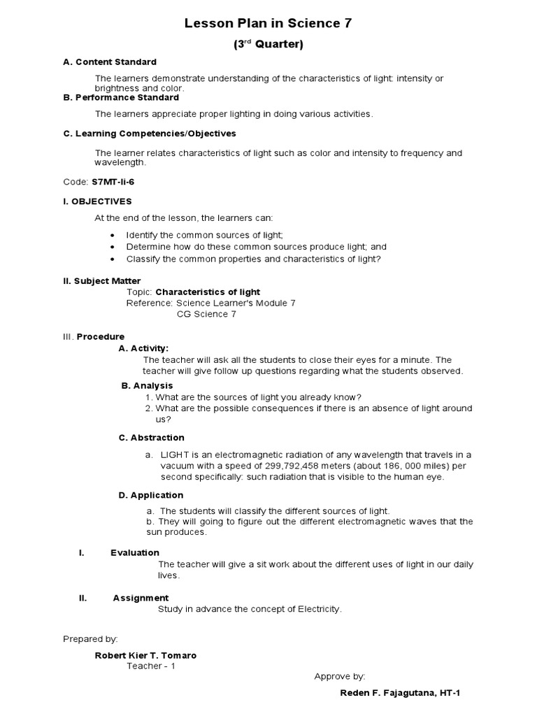 The learners demonstrate understanding of the characteristics of light: intensity or
