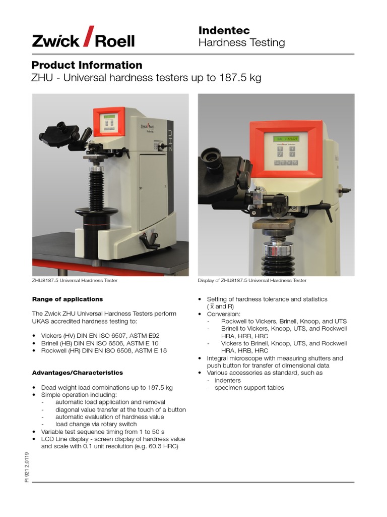 The Zwick ZHU Universal Hardness Testers perform • Conversion: